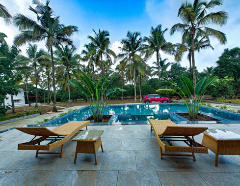 Escape to the peaceful charm of Happy Manggo Hills, a 4-bedroom villa set within an expansive 8-acre mango plantation in Alibaug. Just a short drive from Thal Beach, this tranquil farmstay is ideal for families or groups seeking a nature-filled getaway with a hint of rustic charm. Whether you're lounging by the 20x30 ft swimming pool, playing games under the trees, or admiring the seasonal waterfall view, this villa offers a refreshing blend of simplicity and comfort.